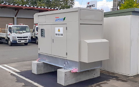 - 岩見沢市、恵庭市にあるLPガス充填所並びに灯油基地にそれぞれ災害時に備えた「非常用自家発電設備」を設置。万が一、停電の際でも恵庭オートガススタンドは閉鎖することなく、LPガスや灯油を安定供給致します。
